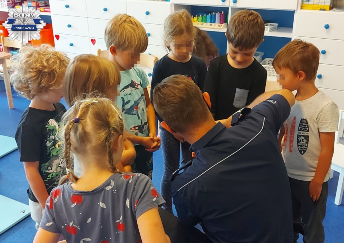 Z kolei dzisiaj funkcjonariusze gościli w Przedszkolu "Zalesinek" w Piasecznie. Dzieci mogły obejrzeć policyjny radiowóz, ale także dowiedzieć się jak mundurowi zabezpieczają ślady pozostawione przez przestępców. Nie zabrakło również cennych wskazówek jak być bezpiecznym.