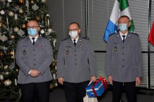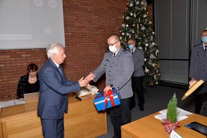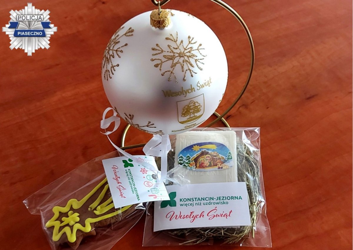 Dzisiaj w siedzibie Urzędu Miasta i Gminy Konstancin- Jeziorna odbyło się ostatnie w tym roku posiedzenie Rady. Uczestniczyli w nim włodarze gminy, radni, a także Komendant Powiatowy Policji w Piasecznie Pan mł. insp. Paweł Krauz. W trakcie przemówienia Pan Burmistrz Kazimierz Jańczuk podkreślał, jak ważna i potrzebna jest współpraca pomiędzy samorządem lokalnym, a policją w dbaniu o zapewnienie bezpieczeństwa mieszkańców. Podziękował również za realizację dotychczasowych przedsięwzięć. Uroczyste spotkanie było też okazją do przekazanie na ręce komendanta komisariatu Pana podinsp. Marka Kruszewskiego urządzenia do kontroli osób na zawartość alkoholu w organizmie. Jest to cenny dar ponieważ nasi policjanci codziennie ujawniają nietrzeźwych użytkowników dróg, którzy są zagrożeniem nie tylko dla siebie samych, ale także innych postronnych osób. Otrzymany alcosensor niewątpliwie przyczyni się do zwiększenia ilości przeprowadzanych badań na terenie gminy. Do Pana Burmistrza oraz Radnych zwrócił się Komendant Powiatowy Policji w Piasecznie Pan mł. insp. Paweł Krauz, który podziękował za całoroczne wsparcie, które jest udzielane policji przez samorząd. Komendant zwrócił również uwagą, że tylko wspólne wysiłki mogą przyczynić się do zaspokojenia tak ważnego dla mieszkańców- poczucia bezpieczeństwa. Na koniec nie zabrakło również współnych życzeń w związku z nadchodzącymi świętami Bożego Narodzenia. Z rąk Pana Burmistrza policjanci otrzymali dla swoich jednostek świąteczne bombki i materiały promocyjne.