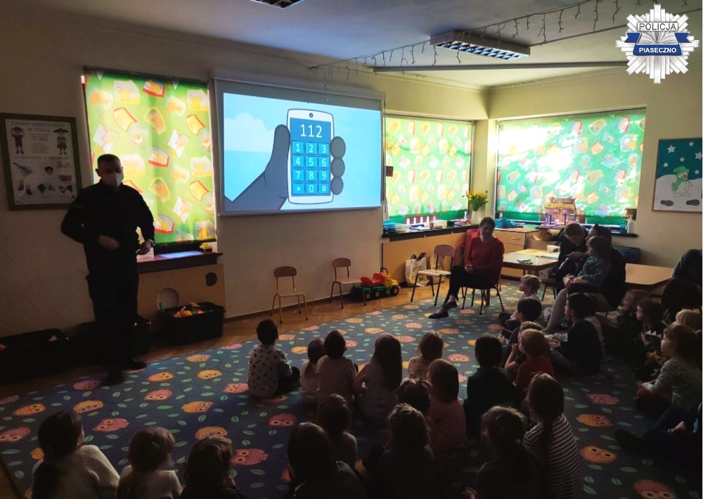 Wczoraj dzielnicowi z komisariatu Policji w Konstancinie - Jeziornie gościli w Przedszkolu "Bimbo". Spotkali się z dziećmi aby przypomnieć im podstawowe zasady bezpieczeństwa. Wskazali jednocześnie, że przestrzeganie ich od najmłodszych lat jest bardzo ważne i z całą pewnością zaprocentuje w przyszłości. Przedszkolaki miały przyjemność obejrzeć bajkę edukacyjną z której dowiedziały się jak poprawnie korzystać z numeru alarmowego, w jakich przypadkach zadzwonić do policjantów, ale też kim jest osoba obca i jak odpowiednio zareagować kiedy spotkamy taką osobę na swojej drodze.