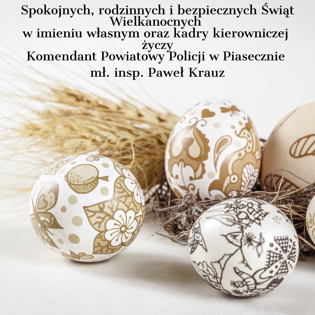 Tradycyjnie, jak co roku, Komendant Powiatowy Policji w Piasecznie mł. insp. Paweł Krauz składa życzenia mieszkańcom powiatu piaseczyńskiego. Niech te święta będą pełne dobroci i wzajemnego szacunku, a o to by były bezpieczne zadbają policjanci.
