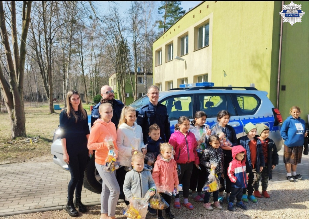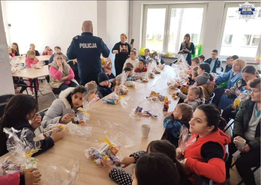 Policjanci i pracownicy cywilni po raz kolejny zorganizowali zbiórkę dla uchodzców z Ukrainy. Tym razem akcja skierowana była w stronę dzieci, by chociaż na chwilę w tym okresie świątecznym pojawiły się na ich twarzach uśmiechy radości. Do inicjatywy wspólnie z policjantami włączyło się również Przedszkole nr 2 "Zalesinek" w Piasecznie, a także rodziny i znajomi naszych funkcjonariuszy. Dzięki akcji udało się zrobić 100 słodkich paczek, które zostały przekazane dzieciom przebywającym w ośrodkach dla uchodzców na terenie powiatu piaseczyńskiego.