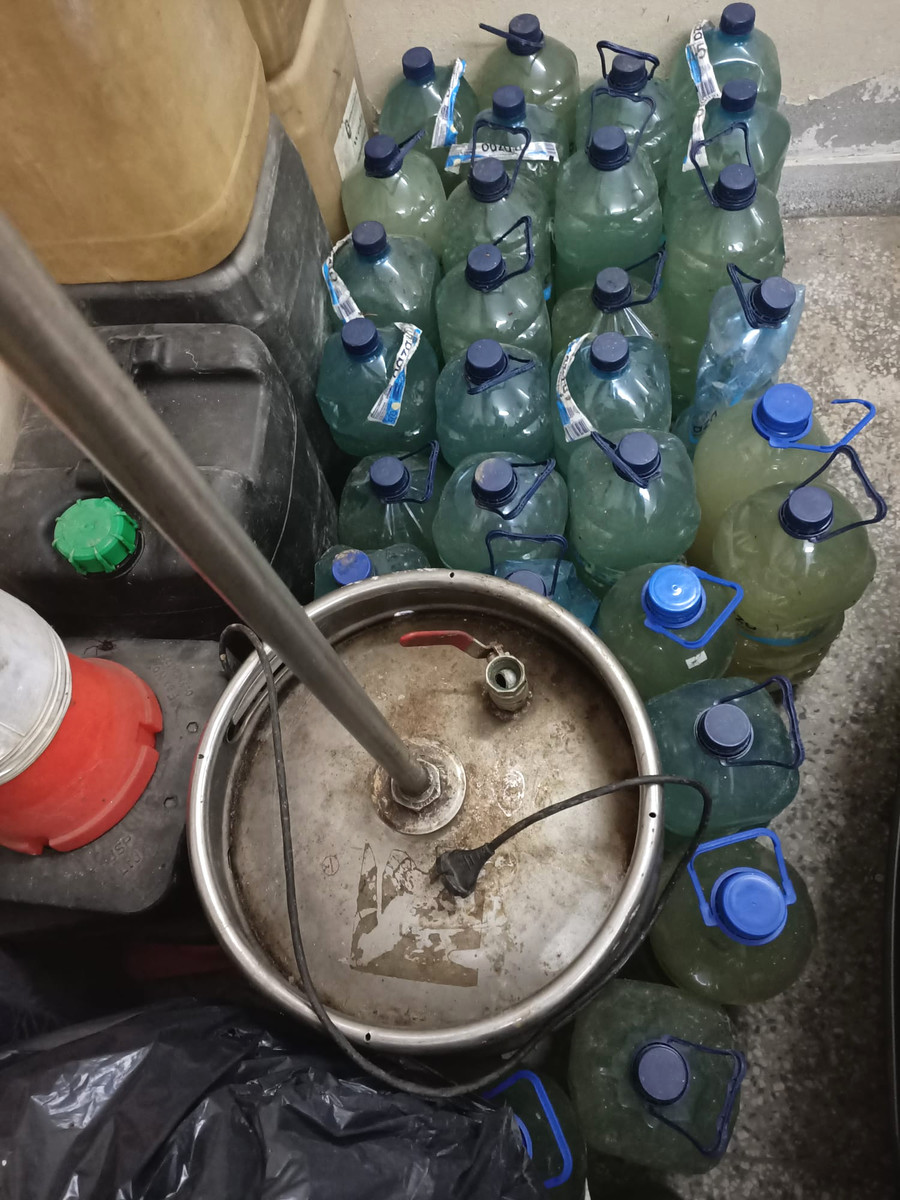 Otrzymane informacje okazały się być wiarygodne. Pod wskazanym adresem, funkcjonariusze zastali 70-letniego mężczyznę, który był zaskoczony wizytą mundurowych w jego domu. W przydomowej szopie, policjanci znaleźli urządzenia służące do produkcji alkoholu, 43 plastikowe butelki 5-litrowe wypełnione mętnym płynem oraz zacier. Cała linia produkcyjna została zabezpieczona.