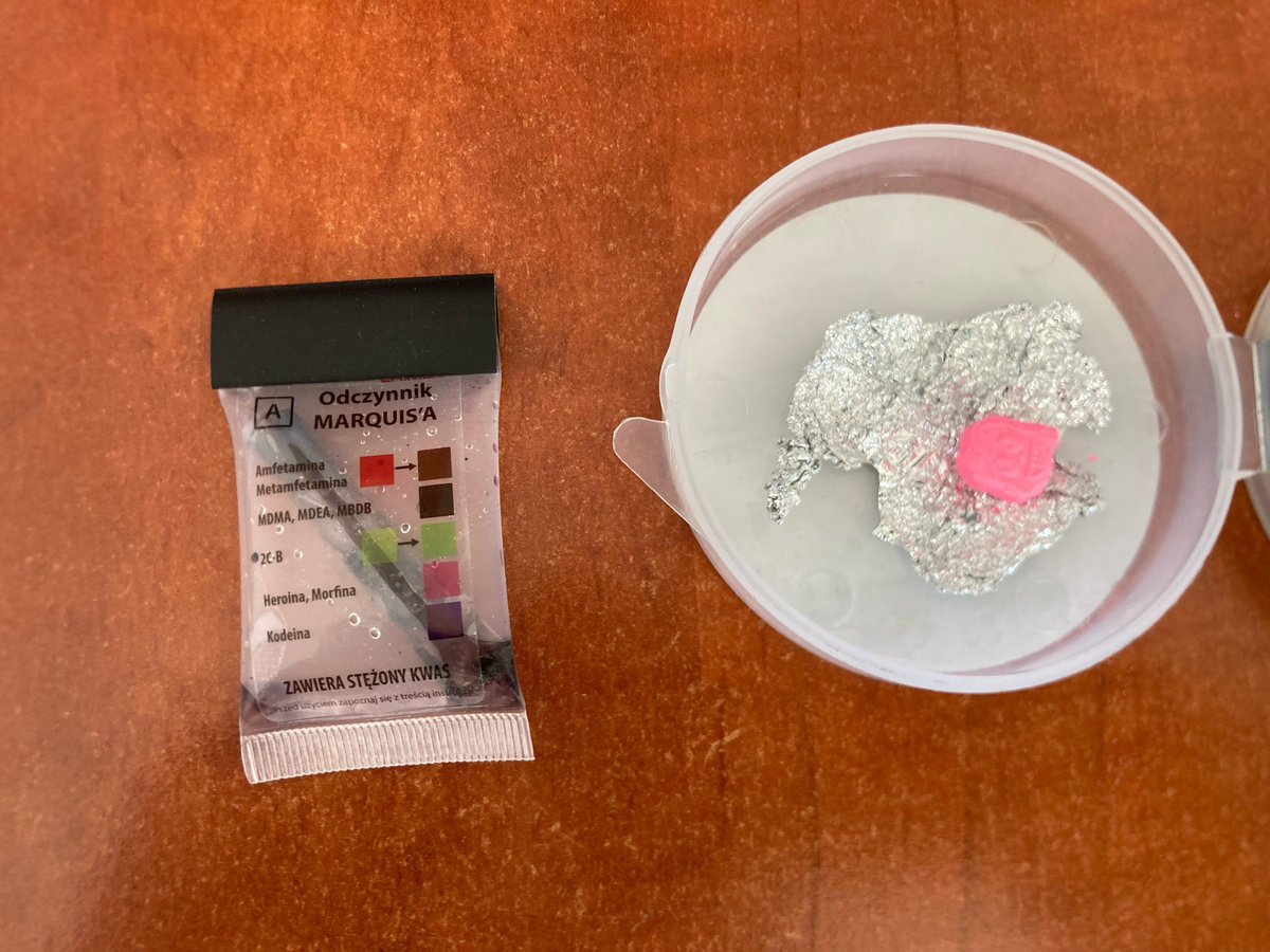 Funkcjonariusze Ogniwa ds. Wykroczeń, Nieletnich i Patologii, w trakcie patrolu, w rejonie jednej z piaseczyńskich szkół, zauważyli nastolatka, który na ich widok zaczął zachowywać się wyjątkowo nerwowo. Policjanci znali już tego nieletniego i podejrzewali, że może on posiadać środki odurzające, podjęli więc wobec niego interwencję, w wyniku której dokonali przeszukania plecaka. W środku, w plastikowym etui, policjanci znaleźli tabletkę o różowym kolorze.