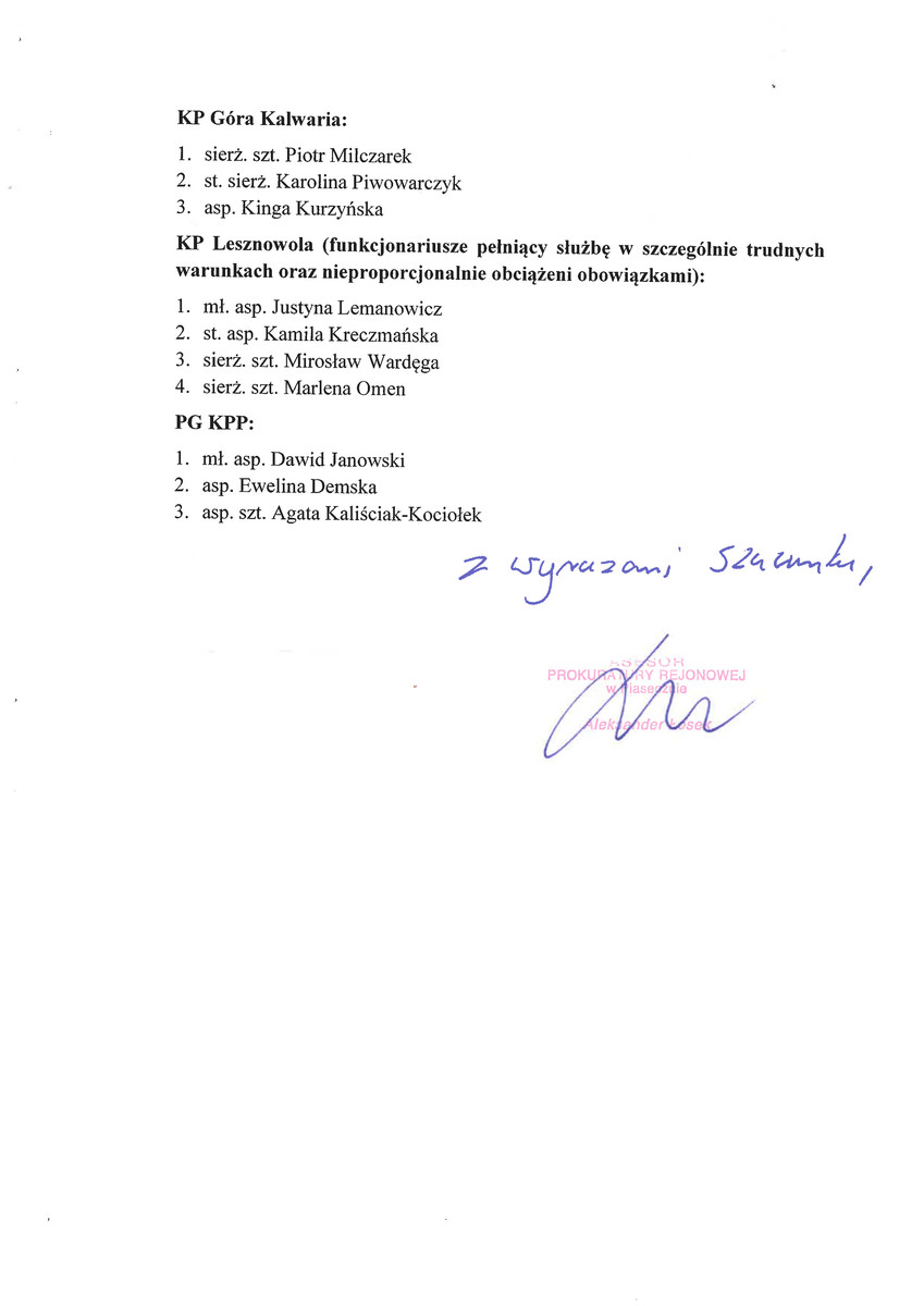 Podziękowania z Prokuratury Rejonowej w Piasecznie z okazji Święta Policji
