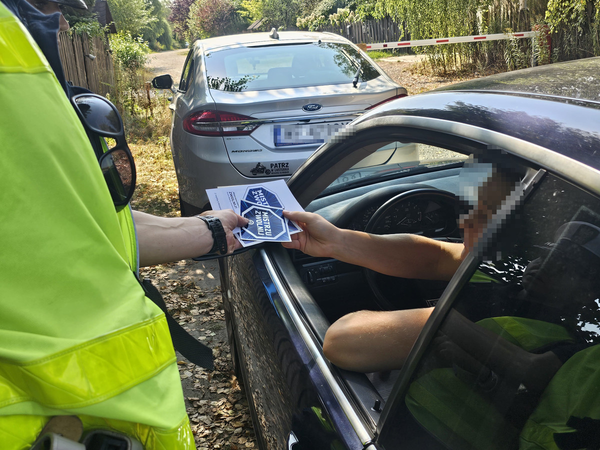 Funkcjonariusze piaseczyńskiego Wydziału Ruchu Drogowego przez cały wrzesień będą edukować kierowców na temat bezpiecznej jazdy m.in. poprzez rozpowszechnianie materiałów informacyjnych dotyczących tej kampanii. Mundurowi podczas kontroli drogowych wręczają kierującym ulotki i naklejki, które są realnym sygnałem, ale też zachętą do ostrożnej jazdy. Naklejając ten mały element na samochód bierzesz odpowiedzialność i dajesz sygnał innym, że sprzeciwiasz się brawurowemu zachowaniu za kierownicą. Każda naklejka to jeden głos więcej w istotnej akcji. Nie zmienimy wszystkiego od razu, ale możemy zacząć od siebie i swojego samochodu. Wczoraj działania prowadzone były na ulicy Fabrycznej w Łoziskach.