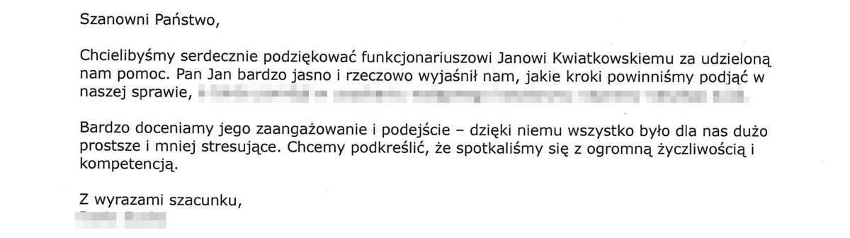 To właśnie za taką postawę, pełną zaagnażowania i empatii, asp. szt. Jan Kwiatkowski - oficer dyżurny Komendy Powiatowej Policji w Piasecznie został wyróżoniony słowami wdzięczności. Za pośrednictwem poczty elektronicznej wpłynęły one do Komendanta Powiatowego Policji w Piasecznie insp. Wojciecha Turka. Kobieta podkreśliła, że spotkała się z ogromną życzliwością oraz kompetencją w stresującym dla niej momencie, a cenne rady, które otrzymała, pozwoliły na szybkie rozwiązanie problemu.