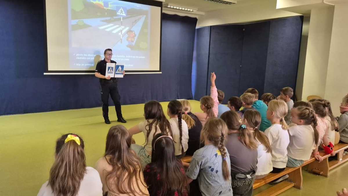 Niezmiernie ważne jest to, by dzieci od najmłodszych lat dowiadywały się o zagrożeniach z jakimi mogą się spotkać i jak powinny właściwie zareagować, a także przypominanie elementarnych zasad bezpieczeństwa w ruchu drogowym. Taki właśnie był cel spotkania asp. Wioletty Domagały oraz asp. Marty Wiatrowicz z uczniami klas I-III Szkoły Podstawowej w Prażmowie. Policjantki przypominały dzieciom jak należy prawidłowo korzystać z dróg oraz co zrobić by droga do i ze szkoły była bezpieczna. Uczniowie mieli okazję dowiedzieć się również, na czym polega praca policjanta, jak wygląda jego mundur oraz jaki sprzęt jest potrzebny podczas służby.