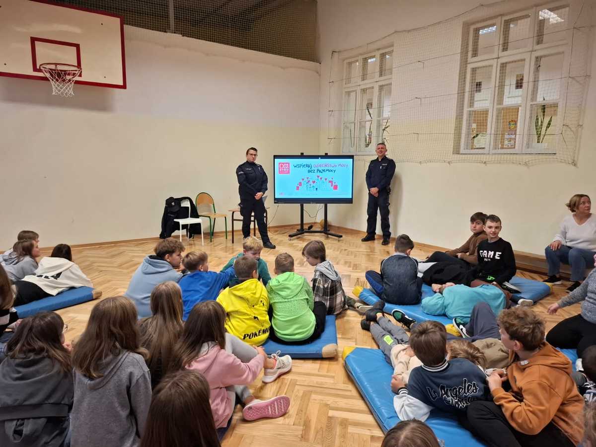 Ważnym zagadanieniem była także cyberprzemoc, obrażanie innych oraz mowa nienawiści. Uczniowie dowiedzieli się, że podlegają odpowiedzialności prawnej, a za przekroczenie granic mogą ponieść surowe konsekwencje. Nie zabrakło również rozmów na temat przemocy w ramach ogólnopolskiej kampanii społecznej „Dzieciństwo bez Przemocy”, która ma na celu przeciwdziałać tego typu zachowaniom wobec dzieci.