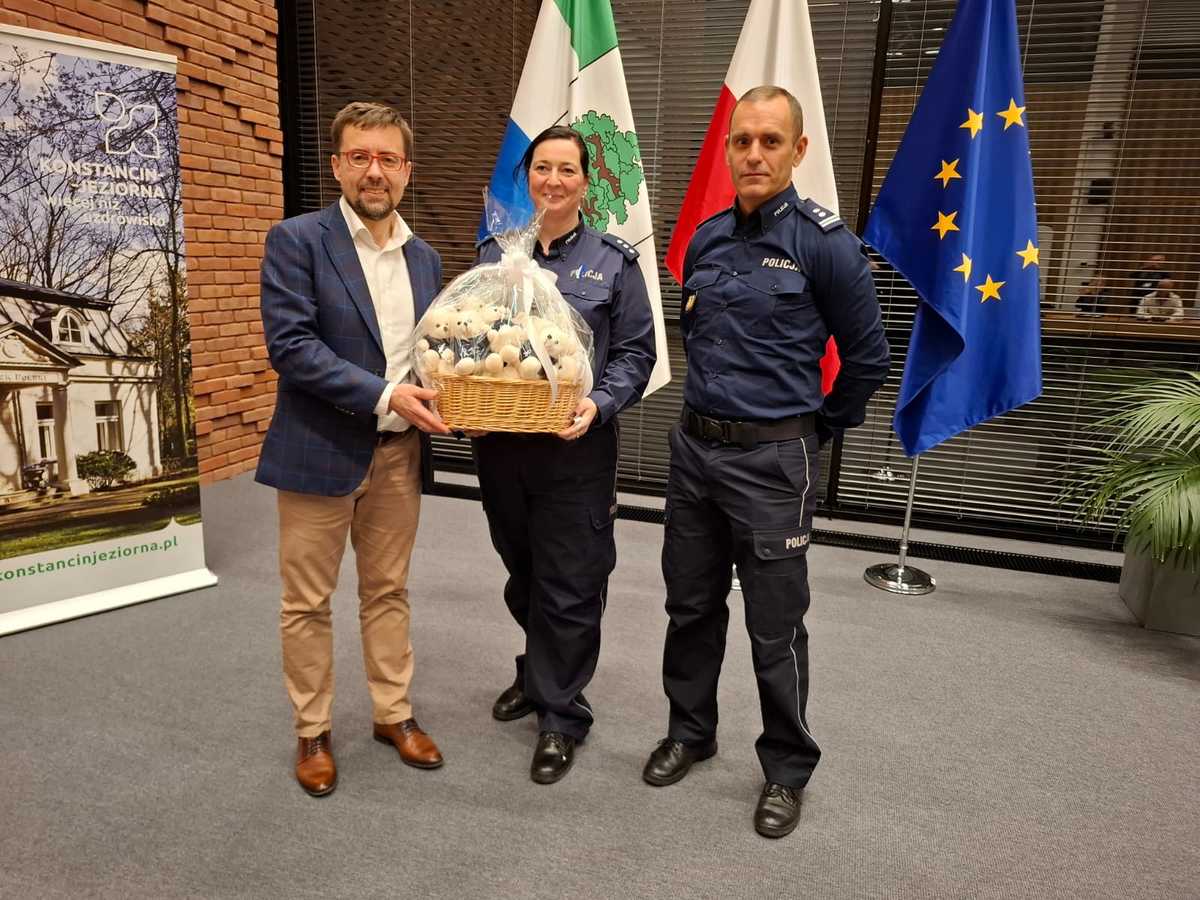 Na zakończenie spotkania pan Michał Wiśniewski - Burmistrz Miasta i Gminy Konstancin-Jeziorna na ręce mł. inp. Rafała Pałdyny oraz kom. Eweliny Ślęzak, przekazał symboliczne misie, które w ramach kampanii "Biała wstążka" będą trafiały do rodzin objętych policyjną interwencją.