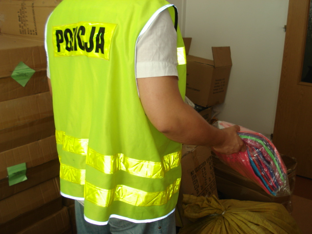Funkcjonariusze kolejno kontrolowali wybrane stoiska handlowe. W jednym z nich odkryli szeroki asortyment odzieży dziecięcej. Wygląd towaru wzbudził jednak zastrzeżenia policjantów. Ubrania wykonane były z niskiej jakości materiałów, posiadały skazy, wykończono je niedbale, a miały znaki towarowe znanych, markowych firm.