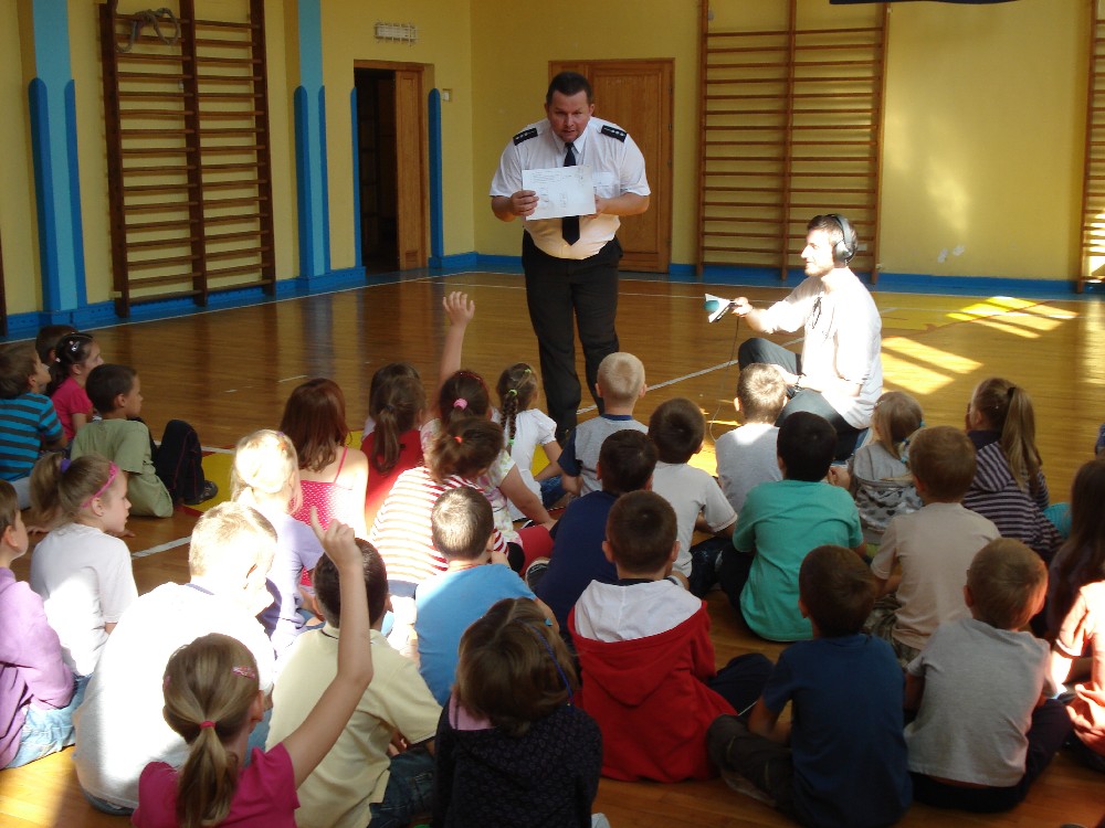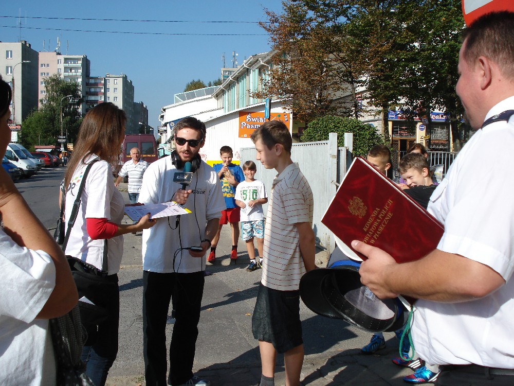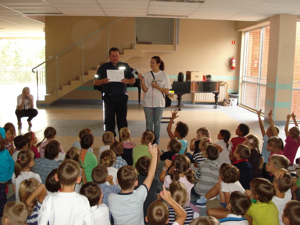Policjanci z Piaseczna wspólnie z reporterami z Radia Kolor w związku z rozpoczęciem roku szkolnego przeprowadzili akcję pn: "Szczęśliwej Szkoły, Bezpiecznej Drogi". Dbając wspólnie o bezpieczeństwo najmłodszych organizatorzy akcji przeprowadzili pogadanki na temat zasad bezpieczeństwa poruszania się na drodze, podczas której przekazali pierwszoklasistom pakiety bezpieczeństwa w postaci odblasków.