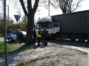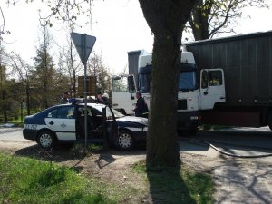 Poniższej zamieszczamy zdjęcia z wczorajszej kolizji w Pamiątce, w której kierujący samochodem ciężarowym staranował policyjny radiowóz. Tylko dzięki błyskawicznej reakcji policjantów, nie zostali oni ranni, zdążyli w porę odskoczyć w bezpieczne miejsce przed nadjeżdżającym tirem.