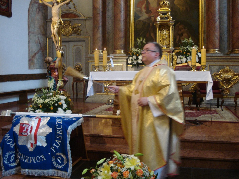 Wręczone nominacje, odznaczenia i wyróżnienia są podziękowaniem i wyrazem szacunku za osiągnięcia i zaangażowanie wkładane w niezwykle trudną i odpowiedzialną służbę. Służbę, która wymaga codziennych poświęceń, czasami utraty zdrowia, a nawet tego co najważniejsze życia. Tak mówił swoim wystąpieniu Komendant Powiatowy Policji insp. Czesław Leicht, podkreślił też bardzo dobrą współpracę z władzami samorządowymi, z radnymi i instytucjami działającymi na terenie powiatu, która upływa w atmosferze pełnego zrozumienia i obopólnej przychylności na rzecz poprawy bezpieczeństwa na terenie powiatu piaseczyńskiego. Najlepszym tego dowodem jest ufundowany sztandar dla piaseczyńskiej komendy, który został zaprezentowany na uroczystości Święta Policji w Piasecznie. Poświęcenia sztandaru, na uroczystej mszy z okazji Święta Policji, dokonał kapelan Policji ks. kanonik Andrzej Kwaśnik.