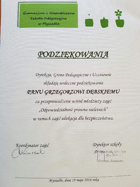 Profilaktyczną prelekcję dla uczniów Gimnazjum i Niepublicznej Szkoły Integracyjnej w Mysiadle oraz w Zespole Szkół Publicznych w Nowej Iwicznej, zorganizowali dzielnicowi z Komisariatu w Lesznowoli mł. aspirant Kamil Woźniak i st. sierżant Grzegorz Dębski. Podczas prelekcji przekazali uczniom jak najwięcej praktycznych wskazówek, które mogą pomóc uczniom w życiu codziennym, nie tylko w szkole, ale też w domu.