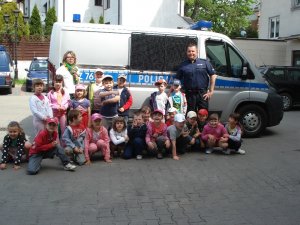 Wczoraj gościliśmy w naszej Komendzie dzieci z przedszkola w Piasecznie. Nie lada atrakcją było dla naszych małych gości zwiedzanie komendy, dużym zainteresowaniem cieszył się też policyjny radiowóz. Dzieci wzięły udział w prelekcji na temat bezpiecznych zachowań w domu, na ulicy, a także w kontaktach z osobami obcymi. Na pamiątkę spotkania dzieci otrzymały kolorowanki i słodki poczęstunek.
